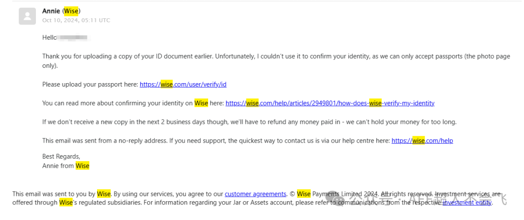 还好我在上交护照前,拍的有几张照片,我把护照照片发给了Wise团队
