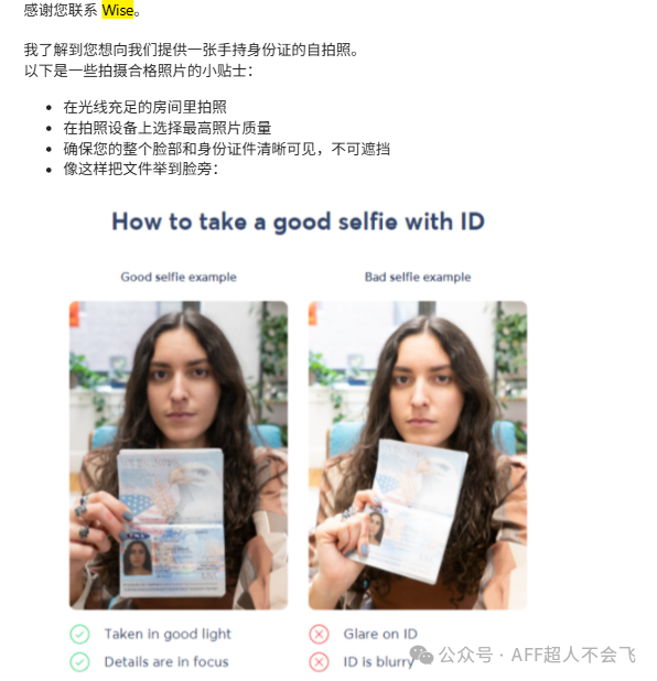 我是很久前就注册了,但是一直没有验证成功,验证时需要用手机现场拍摄证件,不支持照片。大陆用户,身份验证提示需要护照,但我的护照在公司保管,没有拿到。当时我想通过把护照彩打出来,这样拍照时说不定能蒙混过关,没想到这招也不灵,Wise风控能力特别强,不是护照正本的话,它能识别出来。我也试过把护照照片在电脑上打开,验证时用手机拍摄电脑屏幕,也是不行。