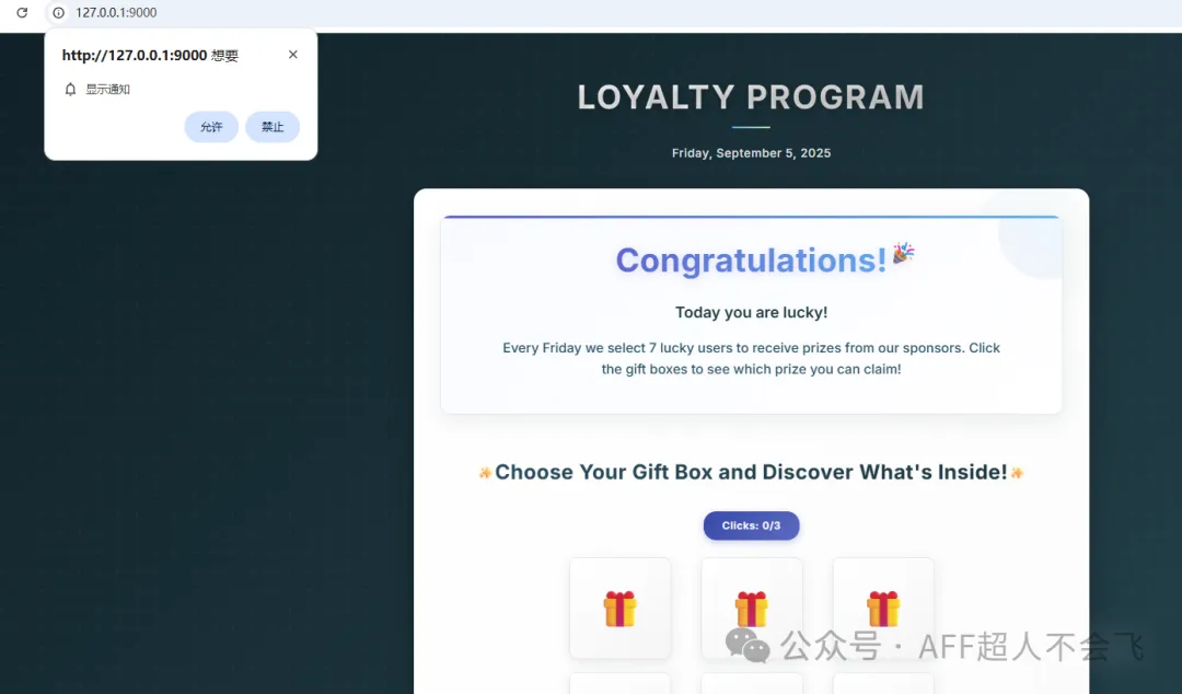 下面是我刚刚创建的LP,我加上了这段代码,然后打开时,左上角就会提示是否允许通知。