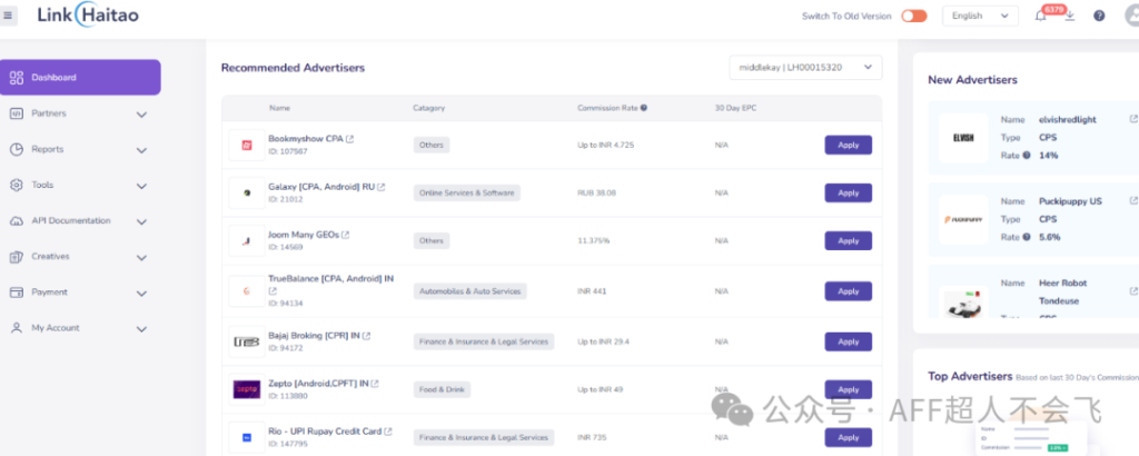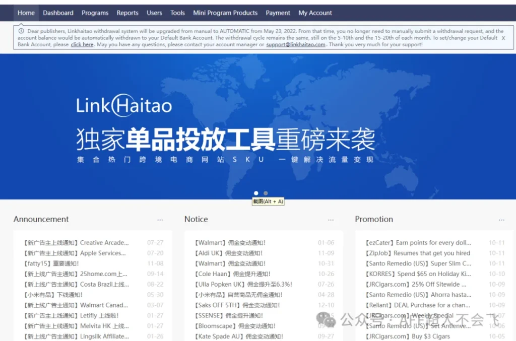 Linkhaitao目前已经有11年历史了,汇聚了超过 40,000 家全球广告商,他们的核心业务是 CPS (Cost Per Sale),也是我们affiliate主要推广的业务。对待Brand bidding也是比较宽容的。老版界面如下: