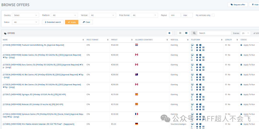 Clickdealer的offer有CPA、CPL、CPS、CPI、RevShare(收益分享)等多种佣金模式,可以自由选择推广。Clickdealer也提供API,一些体量大的老板会用得着。