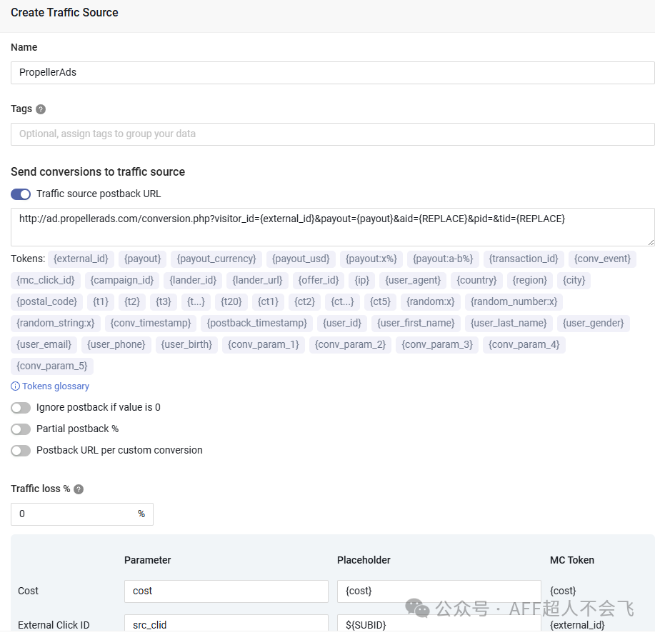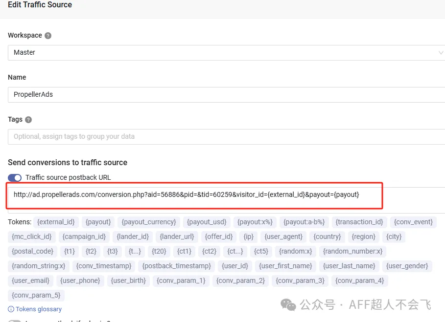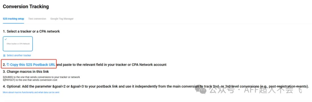 下一步会提示把propellerads的post back url复制并放置到你的tracker里去。
