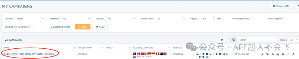 我们以CD联盟为例,取一下offer,例如我要推广它的smartlink