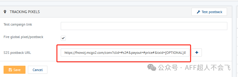 在offer详情页面,把Postback URL粘贴进去,保存。